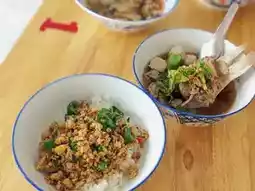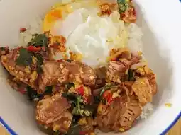 Another great shop that anyone visiting Ayutthaya should not miss is the delicious stewed beef noodle shop. It is a small roadside shop with extraordinary taste. The shop does not have many menus, only noodles and stir-fried basil with pork and beef to choose from. The noodle menu has very good soup, fragrant with Chinese herbs, well-balanced taste, no need to add more seasoning, delicious. The beef and stewed pork are very soft. They give big pieces of pork ribs. The meatballs are also delicious. I personally like the shop's stir-fried basil menu the most. Stir-fried dry, eaten with the shop's fish sauce and chili, it goes together perfectly. Every menu is so delicious that I want to tell others. I recommend coming early in the morning, there will be no more people. If you come late, you will miss out on the food. The shop is located on the same road as Wat Sakae, about 800 meters away, on the main road, not hard to find.