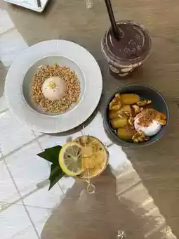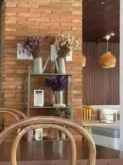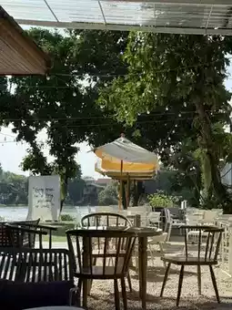 This place is both a cafe, with desserts, cakes, bakery and restaurant, all in one place. There is both an outdoor area by the river and an indoor area with air conditioning. There are many seats, can accommodate everyone. The parking lot is also spacious. It is perfect for chilling with family and friends.