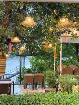I'd like to recommend a restaurant in Ayutthaya. This restaurant has a beautiful riverside view, directly opposite Wat Phutthaisawan. The atmosphere is shady under the trees. The restaurant is about a kilometer from Ayutthaya Hospital. You can grab some roti sai mai and continue eating here. The restaurant is next to the famous Sala Ayutthaya accommodation. There's parking available in front of the restaurant.