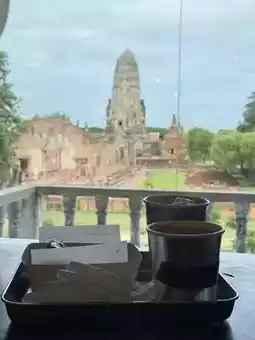 Highly recommended for everyone! The view of Wat Ratchaburana is stunning! The drinks and desserts are delicious and satisfying. There are four floors inside. On the first floor, there’s a small bar at the front for ordering. On the second floor, you can see the staff busy making the desserts through the glass doors, which adds a different vibe. On the third floor, there’s a chatting zone where you can see the view through the windows. And on the fourth floor, you can see the full, beautiful view of Wat Ratchaburana. Everyone recommends going during golden hour, around 5-6 pm, for beautiful light. Personally, I’d recommend going on weekdays when there aren’t many people. It’s more convenient and you don’t have to compete to take photos and enjoy the view. You can sit comfortably. The cafe doesn’t have a parking lot, so you have to park on the side of the road. #Get a discount without relying on luck #Ayutthaya cafe #Cafe #ayutthaya