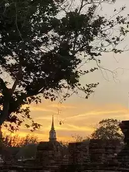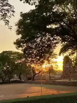 A trip to Ayutthaya wouldn't be complete without visiting its significant historical sites and admiring the beauty of its temples. Here, we bring you a photo of Wat Mahathat in Phra Nakhon Si Ayutthaya Province. The picture was taken in the evening, capturing the sunlight as it sets, reflecting beautifully on the top of the pagoda—truly a breathtaking sight.