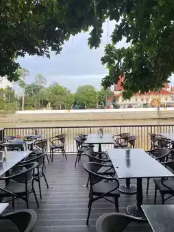 or open-air dining by the riverside for those who want to chill and enjoy the Chao Phraya River breeze. The atmosphere was wonderful, with a cool breeze.