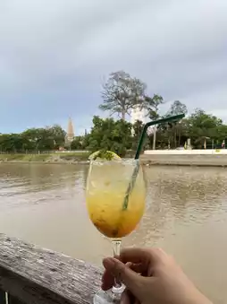 When asked about a restaurant with a great atmosphere and a stunning sunset view in Ayutthaya...
