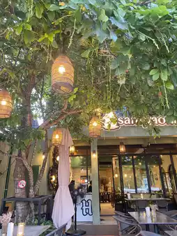 The restaurant offers both air-conditioned rooms for those looking to escape the heat,