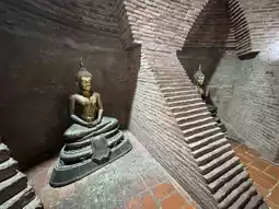 Around the base of the chedi, you’ll find beautifully maintained gardens and shaded areas perfect for a short rest. The afternoon light gave the brick structures a warm glow, making it especially photogenic. The temple’s history stretches back centuries, and you can almost feel the stories embedded in its walls.
