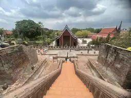 The first thing that caught my eye was the towering chedi, standing proudly against the sky. Climbing up the steps gives you a great vantage point over the temple grounds, where rows of serene Buddha statues draped in saffron robes line the pathways. The sense of peace here is incredible — even with other visitors around, there’s a quiet reverence in the air.