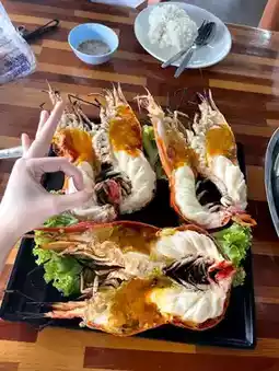 Have lunch at Jung Rikarn, a restaurant famous for its fresh river shrimp, grilled, tom yum, and stir-fried shrimp with sauce. We ordered a full table.