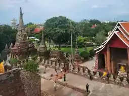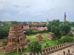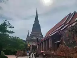 This is one of the most important and famous temples in the Ayutthaya Historical Park. Inside the temple is a large chedi (Chedi Chai Mongkol), towering and visible from afar. Inside, you can climb the stairs for a bird's-eye view of Ayutthaya Island. Outside the chedi, a large reclining Buddha image is a popular spot for worship and blessings.
