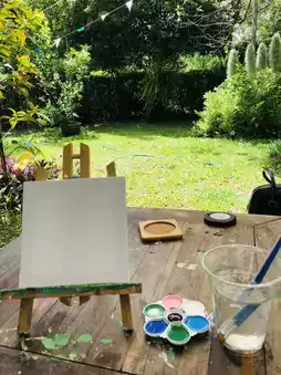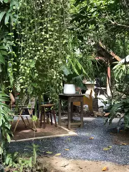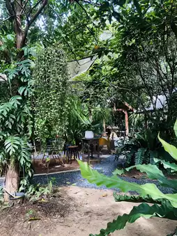 A garden cafe with a painting workshop. You can choose to buy a canvas in the size you want to paint or there are coasters at a very affordable price. Choose the size you want, pay, and then go get the color you want. The shop provides aprons and many chill corners to sit and chat with friends and paint all day. Drinks are not too expensive but not amazing. It's a place to sit and paint for fun. The shop has a small parking lot. It gets crowded on Saturdays and Sundays, but there are plenty of seats. There is a garden corner or you can bring a mat to lay down on the lawn under the shade of the trees. #Ayutthaya #AyutthayaCafe #WorkshopLocation #GetDiscountsNotRelyingOnLuck