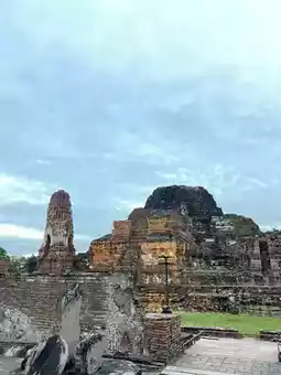 The temple grounds contain ruins, a principal Buddha image, a viharn, and a small pagoda. Explore the temple's atmosphere, evoking nostalgia and offering photo opportunities from various angles.