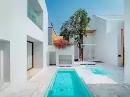 Designed by Onion (architects Onion, Siriyot Chaiamnuay & Arisara Chaktranon), this 26-room hotel stands out with its minimalist concrete and brick architecture that artfully frames natural light and shifting shadows.
