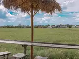 🌾 A cafe in the middle of a rice field A relaxing natural setting.