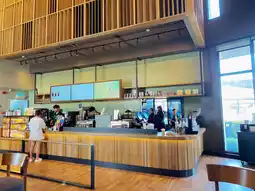 Another great location for travelers, this is our most frequent rest stop. Inside, there are numerous restaurants and convenience stores. The Starbucks is right in front, next to McDonald's. This branch also has a drive-thru. The store is spacious, spanning two floors, and has restrooms, making it very convenient. The store's decor is open and airy, offering a variety of seating options.