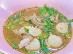 This famous boat noodle shop in Ayutthaya has been serving delicious food for over 20 years. Located in the Ayutthaya Old City, opposite Wat Phlapphla Chai and diagonally across from Wat Ratchaburana, you can walk to the temple. The shop offers a shady atmosphere adorned by large trees. The spacious interior boasts a high, airy roof and plenty of seating. It can get quite crowded on weekends, but the wait isn't too long.