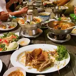 🏡 Good View Restaurant on the Chao Phraya River in Ayutthaya, one of Ayutthaya's most famous riverside restaurants, is renowned for its beautiful views and diverse cuisine. "Good View Phra Nakhon Food Raft", a riverside restaurant, highlights its large grilled river prawns.
