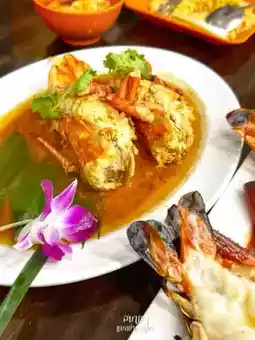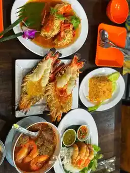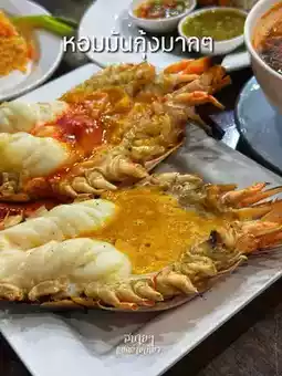 This restaurant is located in the Ayutthaya Central Agricultural Market. As soon as you walk in, you'll see a fresh seafood stand with shrimp, shellfish, crab, and fish. You can choose your own. Just ask the staff, "Grill this for me!" It's like choosing ingredients at the market and having a personal chef prepare them for you!