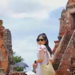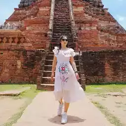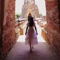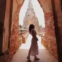 Wat Chaiwatthanaram is one of the most beautiful ancient sites, and the Fine Arts Department has been constantly restoring it, allowing tourists to admire its magnificent beauty and grandeur. Anyone visiting Ayutthaya should definitely stop by. The temple grounds are dotted with shops offering traditional Thai clothing rentals. Visitors can rent costumes, access makeup, and get their hair and makeup done in one place. There are several prices to choose from. Admission is 10 baht for Thais and 50 baht for foreigners.
