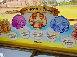 Anyone visiting Wat Chaiwatthanaram shouldn't miss these 3D ice creams, shaped like Wat Chaiwatthanaram and the famous drama "Orn Jao." Five flavors are available for 89 baht: malt, Thai tea, tamarind, lychee-grape, rose-lychee, and mango-passionfruit. We tried the Thai tea flavor, and it was so cute that we didn't dare eat it at first. Once we did, the flavor was delicious, rich, and fragrant, and not too sweet.