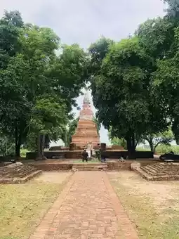 It was originally named Wat Charam, and is located off the island of Ayutthaya. No documentary evidence exists as to when it was built. Archaeological excavations reveal that Wat Phra Ngam has a layout popular in the early Ayutthaya period, facing east. The temple's boundary is defined by a surrounding moat on all sides. The main chedi in front of the chapel, believed to have been adapted from a round chedi vihara, sits on a square base superimposed on an octagonal base. The chapel is a raised structure with a surrounding base, and there are traces of construction over the original building. Excavations and excavations have uncovered numerous artifacts, including terracotta and stucco architecture, roof tiles, and stucco-patterned roofs depicting nagas, angels, deities, and Chinese nails. The lap of the principal Buddha image, a bronze Buddha image in the meditation posture, was also discovered. The chapel at Wat Phra Ngam is a rectangular structure measuring 15 meters wide and 34 meters long, with two entrances at the front and back, each on each side. A pedestal for enshrining the Buddha image is located on the west side of the building. And traces of restoration have been discovered many times. The interesting thing about this temple is the Gate of Time, the temple gate that shows the roots of a large Bodhi tree, a sacred tree in Buddhism, at least 100 years old, creeping and covering the arch. The trunk grows higher and higher, resembling a large dome. Tourists like to come to watch the sunset through the Gate of Time. #Get a discount without relying on luck #Ayutthaya temple #Ayutthaya #Thai temple
