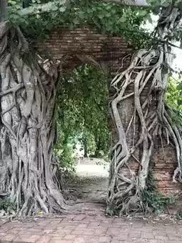 The Gate of Time: This temple gate, which is covered with vines, appears to have roots from a large Bodhi tree, a sacred tree in Buddhism, at least 100 years old.