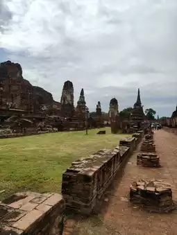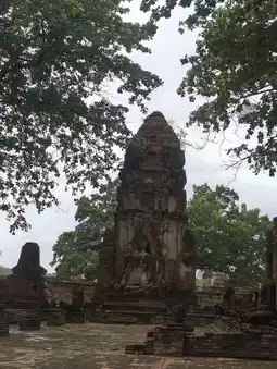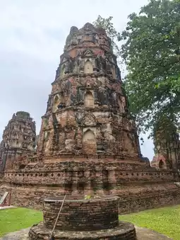 Wat Mahathat is a prang built during the early Ayutthaya period, influenced by Khmer prangs. The lower level is constructed of laterite, but the upper part is reinforced with brick and mortar. King Prasat Thong renovated the prang, extending it higher. However, the spire has now collapsed, leaving only the porch. This is a shame, as evidence suggests it is a very large and exquisitely constructed prang. In 1956, the Fine Arts Department excavated the prang and uncovered several important artifacts, including a stone urn. Inside, seven tiered stupas are arranged, each made from tin, silver, niello, black wood, red sandalwood, garnet, and gold. The inner tier contains the Buddha's relics and valuable jewelry. The relics are currently enshrined at the Chao Sam Phraya National Museum. Another interesting feature of the temple is the sandstone Buddha head, covered in tree roots. It is believed that the head fell to the base of a tree during the fall of Ayutthaya, and the roots have overgrown it, creating a uniquely beautiful structure. Located at the foot of Pa Than Bridge. To the east of Wat Phra Si Sanphet, some chronicles say that this temple was built during the reign of King Borommarachathirat I. Later, King Ramesuan ordered the relics of the Lord Buddha to be enshrined under the base of the main prang of the temple in 1927. #Wat Mahathat #Phra Nakhon Si Ayutthaya
