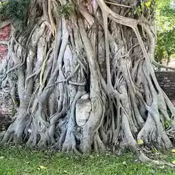 “Walk along the ancient tree roots and the Buddha heads of time 🍃