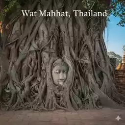 📍 Point 2: Wat Mahathat. The highlight is the ancient Buddha head covered with tree roots.