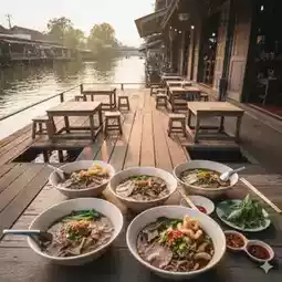 "Eat and dangle your legs, so good you'll forget you're back in Bangkok!" This canalside noodle shop lets you sit and dangle your legs while sipping on rich broth.