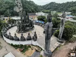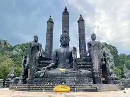 🌿🙏🪨Made from rocks and minerals in this area, melted at high heat until it looks like lava, then cast into a gray-black stone Buddha statue. This large Buddha statue has the first sermon, the dancing, and the meditation postures. The base of the Buddha statue in the center is carved with Pali verses, and the Buddha statues are arranged in a circle around the large Buddha statue in the outdoor area, beautiful and unusual, truly Unseen Saraburi.