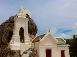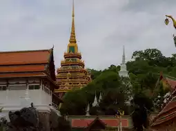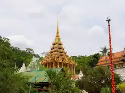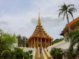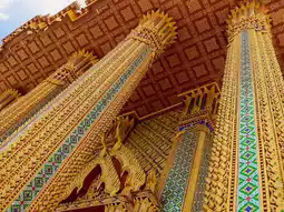 • The seven-story prang-spired pavilion, perched on a hill, houses the sacred footprint of the Lord Buddha, a key highlight. The exterior is decorated with intricate gold and blue glass patterns, giving it a grandeur reminiscent of a royal temple in Muang Thep!