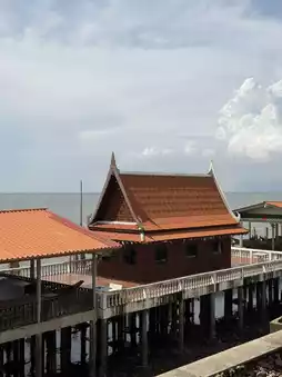 🔥 A temple in the middle of the water, situated on the Gulf of Thailand, Wat Khun Samut Chin, features a large Buddha statue by the sea and an old church with traces of submersion. Visitors can also see ancient artifacts, Chinese pots and vases, and even the skeleton of Valbruda.