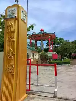 A large statue of Guan Yin sits atop a pond at Wang Sam Sien on Khao Phra Tamnak. Surrounded by shady trees, the shrine also boasts beautiful architecture, including: