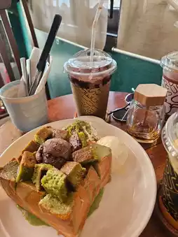 🍰 A must-try menu item is the "Orange Espresso," a refreshingly sweet and sour drink with a smooth, creamy texture. Next, try the "Banoffee," a smooth banana cake with just the right amount of sweetness. Pair it with rich green tea milk for a truly delicious experience!