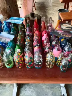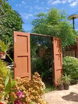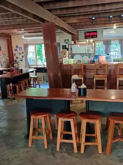 It's like we've lost our way and found ourselves at Ping Ruea Cafe, a charming cafe hidden in the Hua Khuang community in Mueang District, Phrae Province. Originally a two-story wooden house, the ground floor has been transformed into a meeting place for socializing, exhibiting handicrafts, drawing, painting, and bottle painting. They also serve tea, coffee, and other beverages. Surrounding the house is a garden with trees, creating a wonderful atmosphere. They also serve snacks. The most delicious and classic dish is the Nam Ngiao Nam Moo (pork and pork soup). If you're in Phrae and haven't tried Nam Ngiao Nam Sai (clear soup), a secret recipe from Phrae, you've truly missed out.