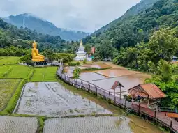 🌾⛅ Take a tour of a beautiful temple in the middle of a rice field, "Wat Nakuha," in Phrae Province. 🛕✨