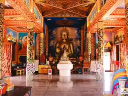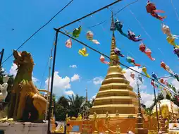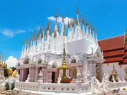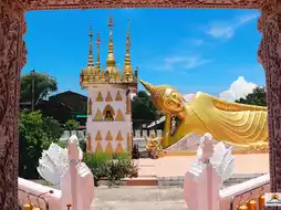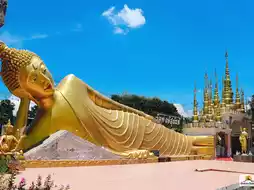This ancient temple has been beautifully restored and is one of the city's most important tourist attractions. Highlights of the temple include the large, resplendent golden reclining Buddha, clearly visible from the outside, the auspicious 19-spired archway, and the magnificent 108-spired glass chedi. Other highlights include the Phra Chao Saen Suk, a Buddha image over 500 years old, and the Phra Chao Tan Jai, a popular place for people to pray for blessings.