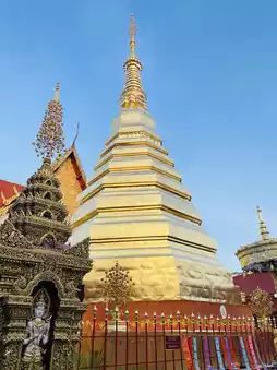 The highlight of the temple is its striking golden chedi and viharn ✨, along with an ancient teakwood viharn intricately carved 🪵. Photography enthusiasts will find plenty of picturesque spots 📸, including walkways, staircases, and archways.