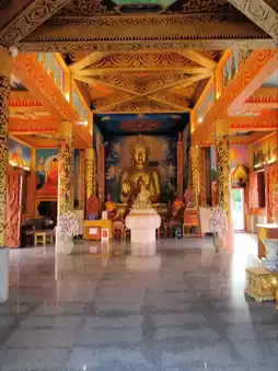 Wat Phong Sunan, an ancient temple located within the old city walls of Phrae, is home to the principal Buddha image, Phra Chao Saen Suk, which is over 570 years old. The temple also features the Glass Vihara with 108 spires, housing sacred relics and a wooden Phra Surasawadee statue made from jackfruit wood, along with stunning mural paintings. Along the temple wall, there is a large reclining Buddha, and to the right, a beautifully preserved ancient scripture hall. The side gate showcases a golden stupa, a giant turtle, and a standing Buddha image known as Phra Chao Thanjai. Visiting Wat Phong Sunan to pay respects and make wishes is believed to bring happiness, career advancement, and safe travels.