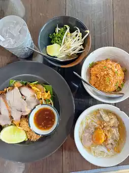 Hom 2493 is a restaurant that serves both local Phrae dishes and delicious som tam (papaya salad). Their signature dishes include Hom Pad Mee (fried noodles with pork soup), Khanom Sen Nam Moo (rice noodles with pork soup), and fried chicken wings with Makwaen (ma-kwaen). All the dishes are incredibly delicious, and the prices are reasonable.