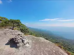 Another outstanding and interesting tourist spot on Phu Kradueng. In addition to the beautiful mountain view on the cliff, the attraction for tourists is the high rocks that look like small clouds. Tourists like to stand up and take pictures, giving the feeling of stepping on clouds. The camera angle makes it look like you are floating in mid-air. In addition to being a popular photo spot, you can also sit and watch the sunset. The view is just as beautiful as Pha Lom Sak or Pha Mak Dook.