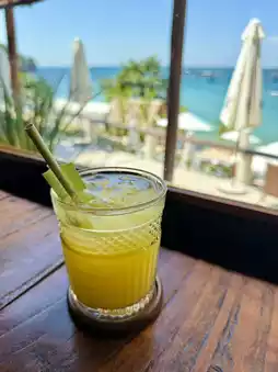 I ordered a pineapple juice and an orange juice. The vitamin colors look great against the blue ocean!