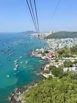 The cable car is 7,899.9 meters long, the longest in the world. The cable car is quite high, so it is like an attraction and very enjoyable. 15 minutes later, you will arrive at Hong Tom Island.