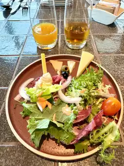 I recommend eating on the terrace on sunny mornings! You can enjoy the view of Kiss of the Bridge.