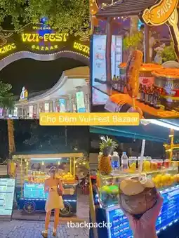 🌅After working out, watch the evening sunlight. We used the hotel's shuttle service to send us to the Night Market "Vui-Fest Bazaar Sunset Town". Walk and relax with the sea breeze. There are a lot of street food restaurants. When you come here, you must eat sausages and end with seafood with spicy Vietnamese dipping sauce. 🦞🐟🎣