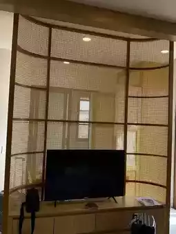In the room, there is a TV, hair dryer, iron, and the bathroom area is separated into dry and wet zones. There is a wardrobe and dining table. Hot water kettle