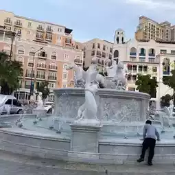 📍The fountain in front of LaFesta Hotel, the colorful buildings behind it are beautiful and stylish.