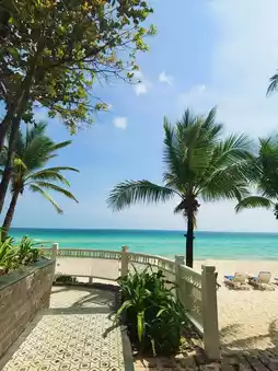 ๐๏ธ Bai Sao Beach: A fine white sand beach with palm trees swaying gently under the blue sky and sea. A great place for a relaxing vacation.