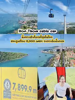 Prepare to go to ๐๐จ๐ง ๐๐ก๐จ๐ฆ ๐๐๐๐ฅ๐ ๐๐๐ซ. The cable car ticket costs 700,000 ๐ฏ๐ง๐ (1,000 baht) per person for a round trip. This price does not include the buffet. (If including the buffet food, it will be 1,000,000 cc) ๐ซ It is the longest cable car ride in the world and is almost 8,000 meters above sea level. It takes about 30 minutes. The view is very beautiful. ๐ ๐ When you take the cable car to the other side, it will be ๐๐ฎ๐ง๐ฐ๐จ๐ซ๐ฅ๐ ๐ก๐จ๐ง ๐ญ๐ก๐จ๐ฆ. There is an amusement park ๐ข, a water park ๐๐ปโ๏ธ and a high-angle view of ๐๐๐ยฐ ๐๐๐ ๐ฅ๐ ๐๐ฒ๐ ๐ผ. You can stay all day until ๐๐.๐๐ hrs. The cable car runs from ๐๐.๐๐ hrs. - ๐๐.๐๐ hrs. (Check the schedule carefully because the cable car stops. 11.30 - 13.30 hrs.) .... Take the cable car back to ๐๐ฎ๐ง๐ฌ๐๐ญ ๐ญ๐จ๐ฐ๐ง and ๐ช at ๐๐.๐๐ hrs. Check in at ๐ฅ๐จ๐ญ๐ฎ๐ฌ ๐ก๐จ๐ฆ๐ ๐๐๐๐. The room rate is ๐,๐๐๐ baht per night / ๐ rooms (including breakfast). After checking in, we walked to the clock tower ๐ซ and stopped to take pictures at the flower stairs. A popular corner that everyone must come to ๐ช๐ธ๐
