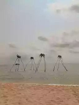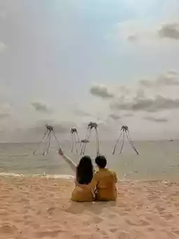 The beach is littered with all kinds of creative art installations, from huge seashells, sea snails to fantastic cloud swings, each is a photo hotspot, in the evening, the sky is dyed golden yellow, come to watch the sunset is the most suitable frame.