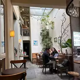Quiet and calm for working, reading books. Coffee was nice, with variety of specialty coffee. Overall, it's a beautiful place, peaceful vibe. I always enjoy sitting outside with sunlight and enjoy spring breeze.